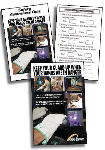 During the safety meeting, supervisors can distribute Employee Safety Cards that reinforce the meeting content, and follow up with tick box or "scratch card quizzes. The safety cards provide each employee with a copy of pertinent safety information. The quizzes give helpful discussion points during the meeting and also document attendance. If safety incentives are offered, the quizzes can be used for a safety draw.