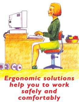 Use this poster to encourage employees to sit comfortably at work stations and to position their keyboard and screen correctly